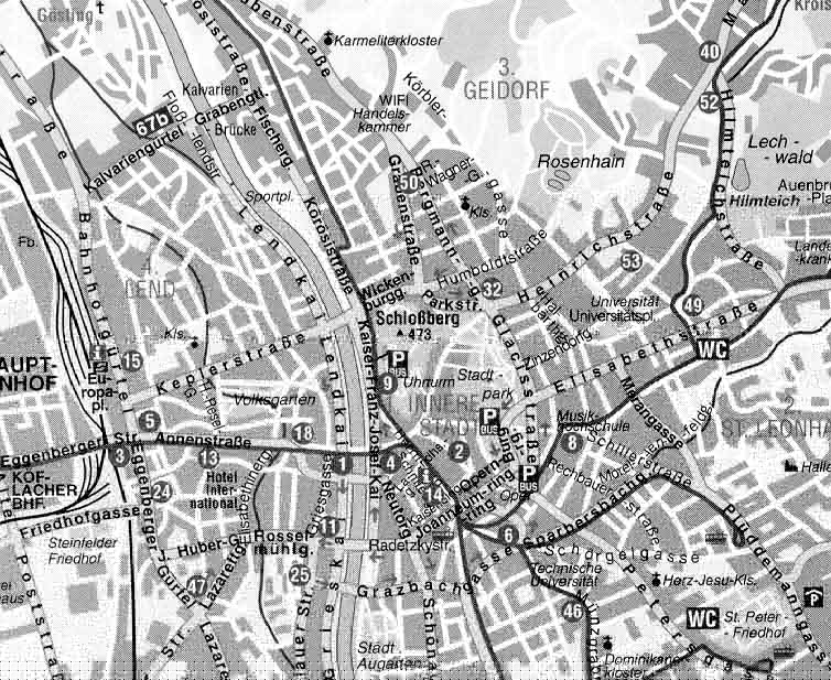 The bold lines show the public transport system (tram or bus)